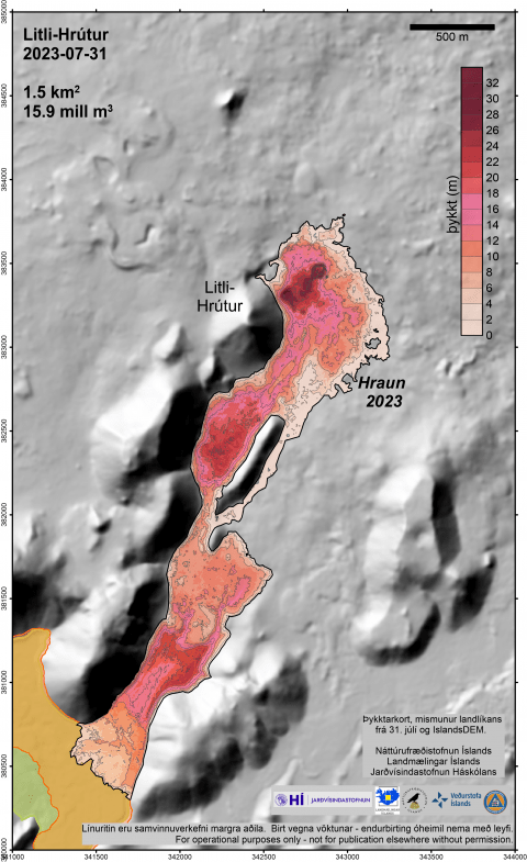 Síðdegs Í gær, 31. júlí, var flogið loftmyndaflug yfir hraunið við Litla-Hrút.