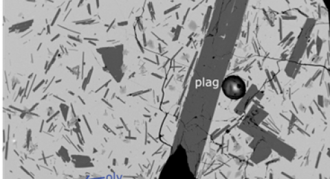 Hraðkældum hraunsýnum var safnað 1. apríl frá suðurenda gossprungunnar. Sýnin voru undirbúin fyrir smásjárskoðun og efnagreind hjá Jarðvísindastofnun Háskólans. Myndir og gögn sem sýnd eru hér voru fengin með örgreini Jarðvísindastofnunar.